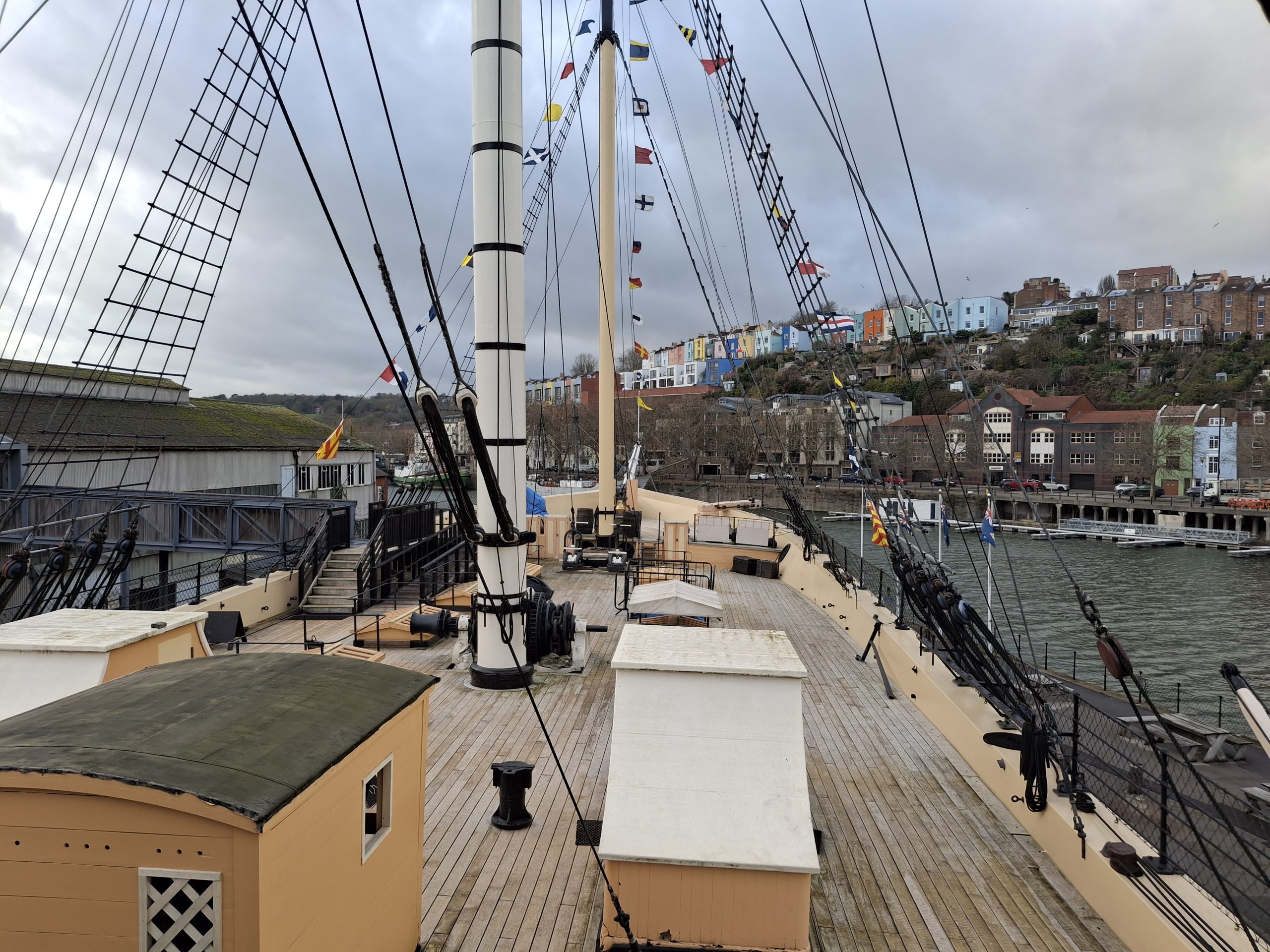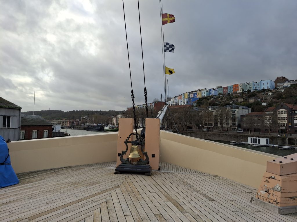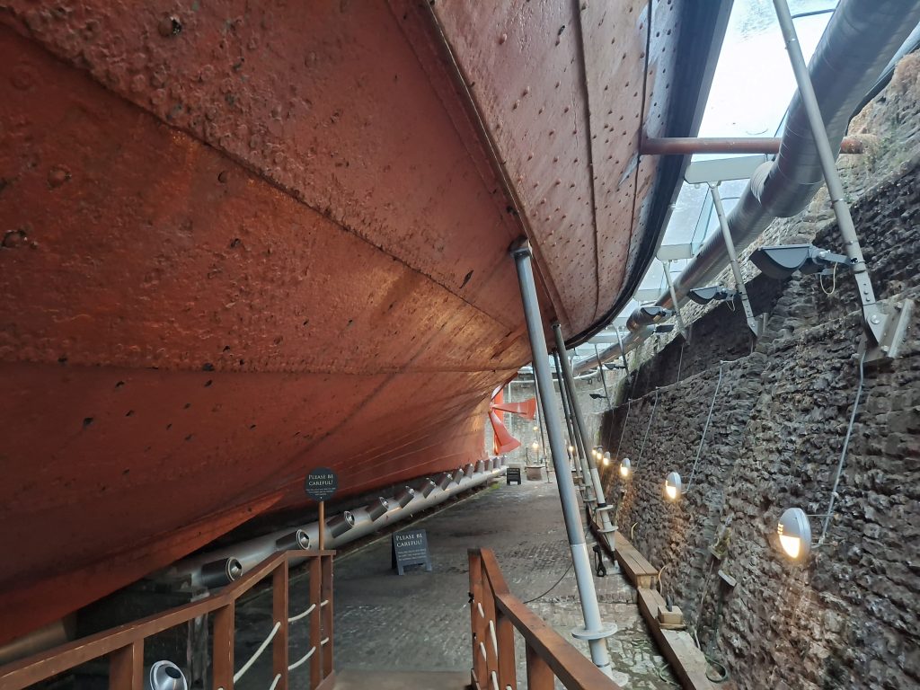 The ship has been in dry dock since being salvaged from the Falkland Islands in 1970 – back then, there was no tourism in Bristol (everyone went to Bath) and the gentification of the Bristol docks hadn’t yet happened – The area was all wood sheds and coal yards.