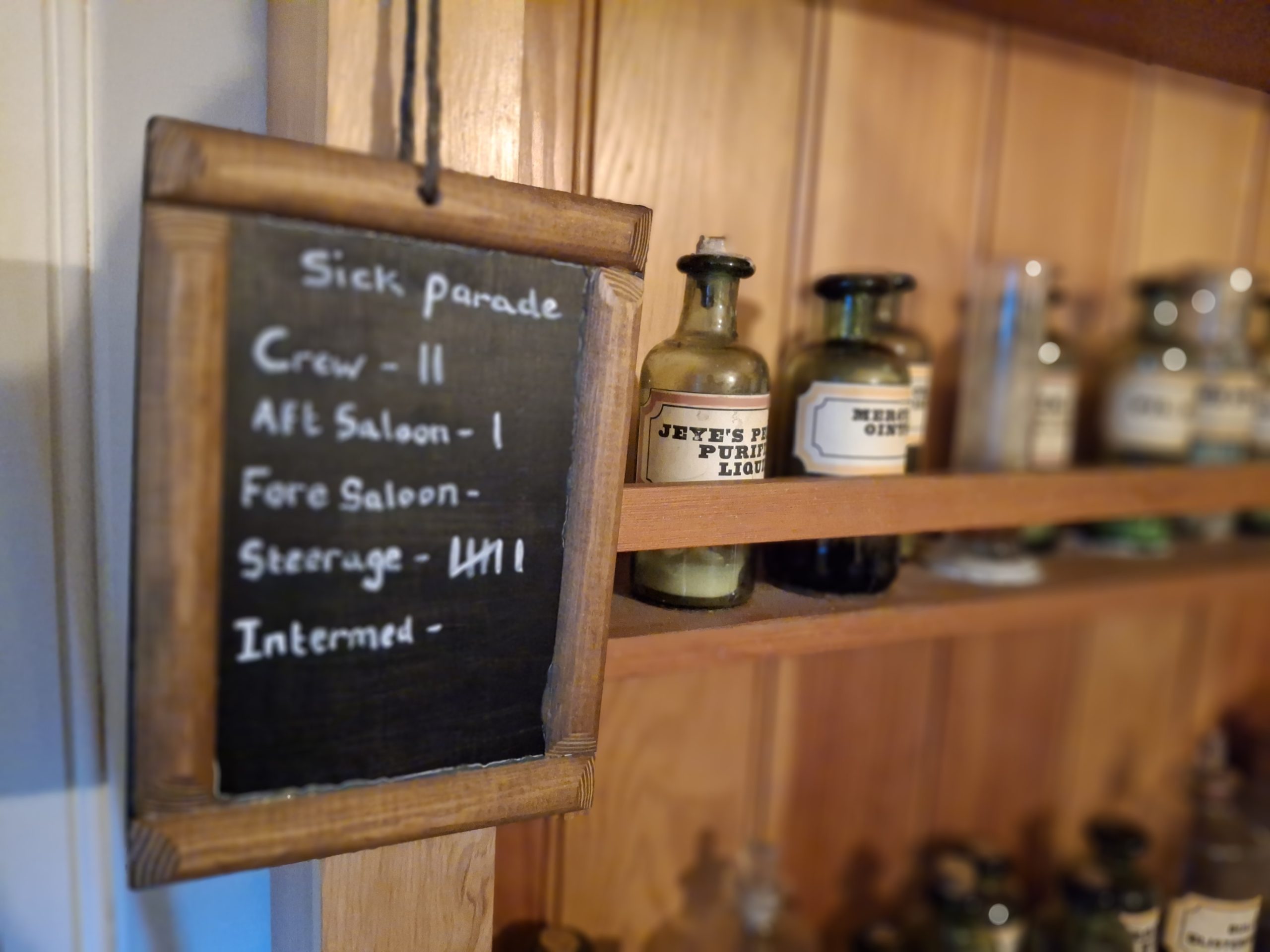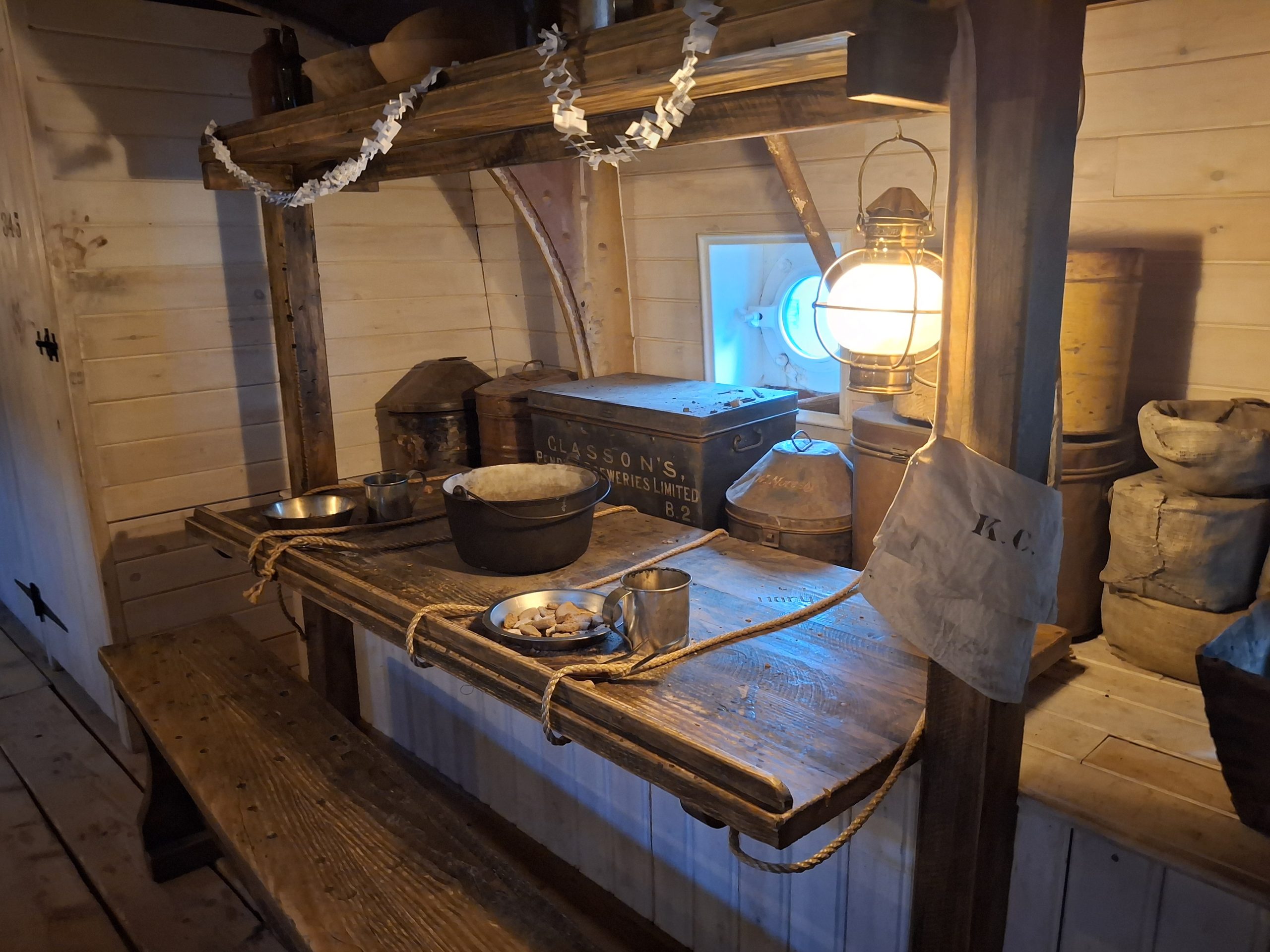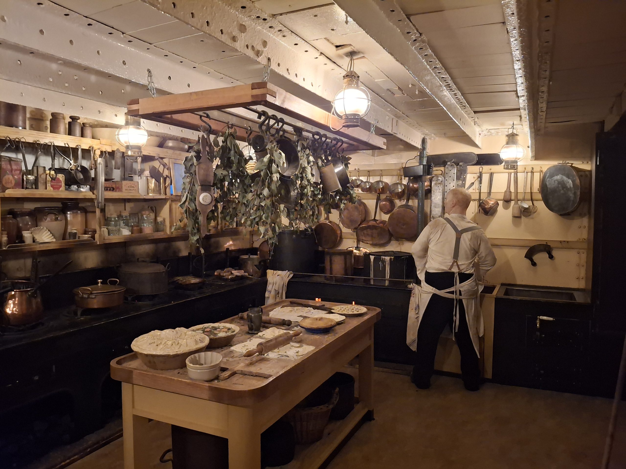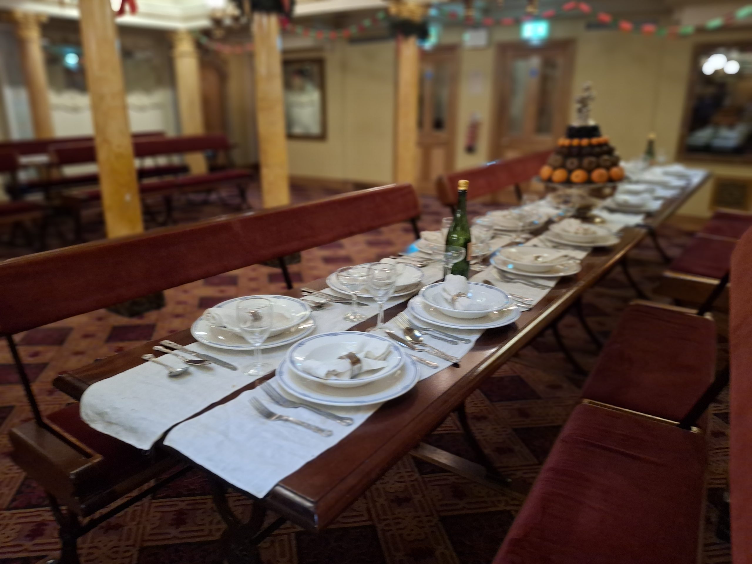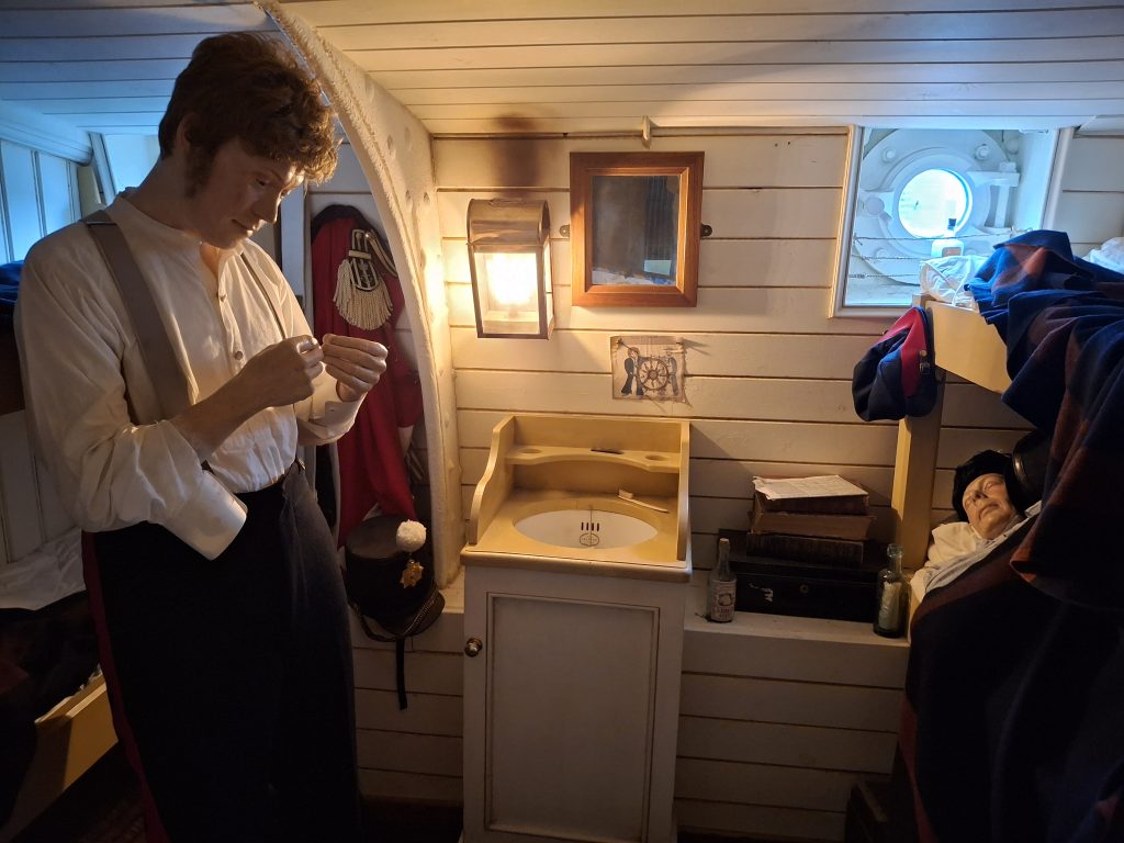 There are three decks on board the ship to explore – the outside deck, the accommodation deck (including steerage, the kitchen, engine room, first class cabins) and a lower deck with the dining room. Down below you can go and see the dry dock, and at the moment that area is also being used for the festive light display, which was impressive.