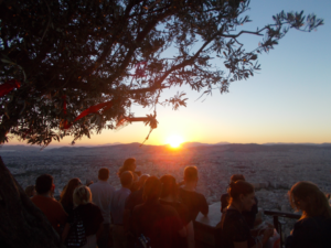 Sunset from Mt. Lykavittos 15 August 2016 0 We left the Underground at Syntagma/Σύνταγμα and walked through the Kolonaki/Κολωνάκι district, going up Ploutarchou/Πλουτάρχου Street until we reached the cable car which goes up the mountain.
